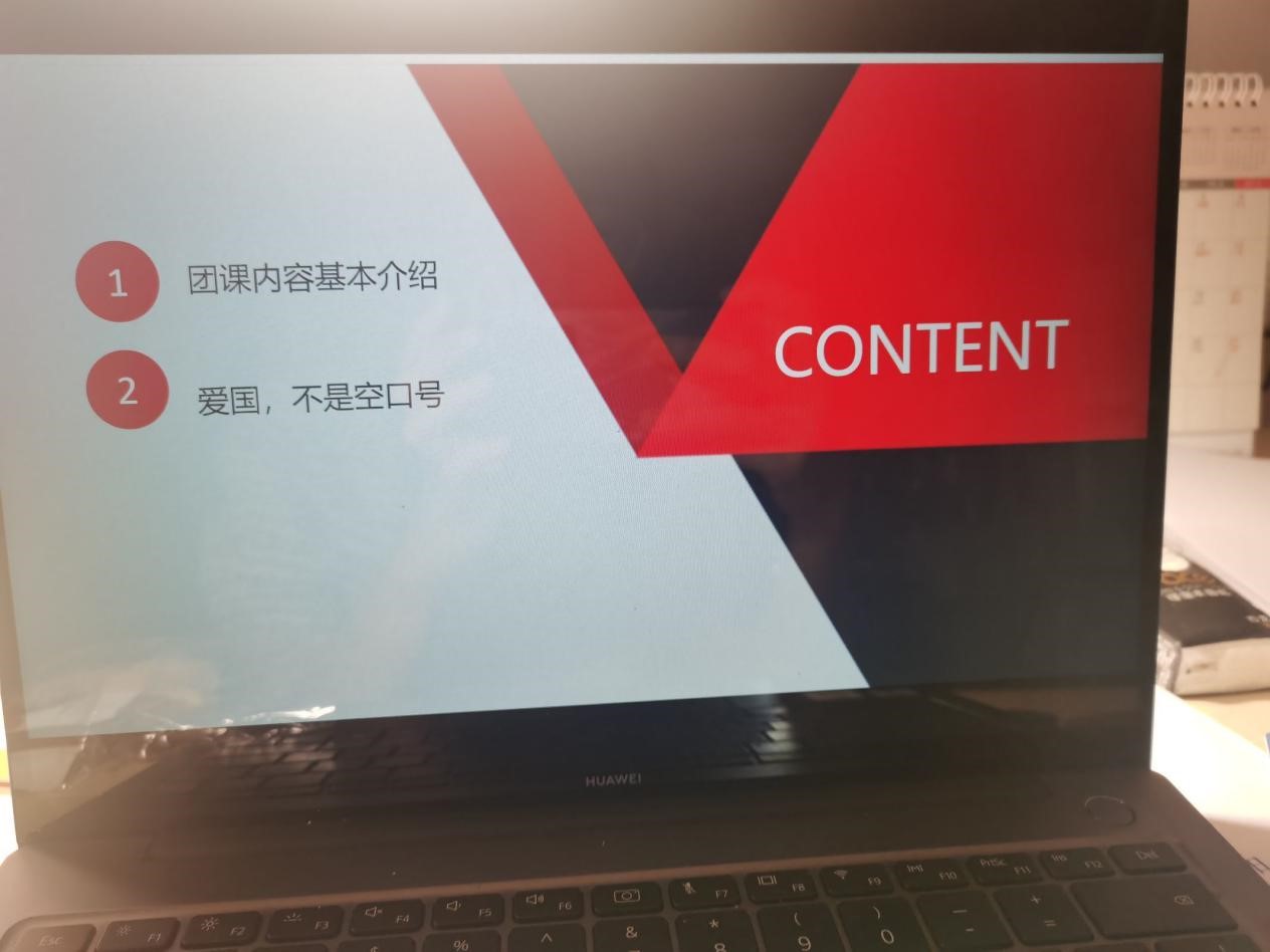 团课开始,团支书李炼组织全体团员唱响团歌《光荣啊!中国共青团》。并组织观看《请党放心,强国有我!共青团员及少先队员代表献词》。