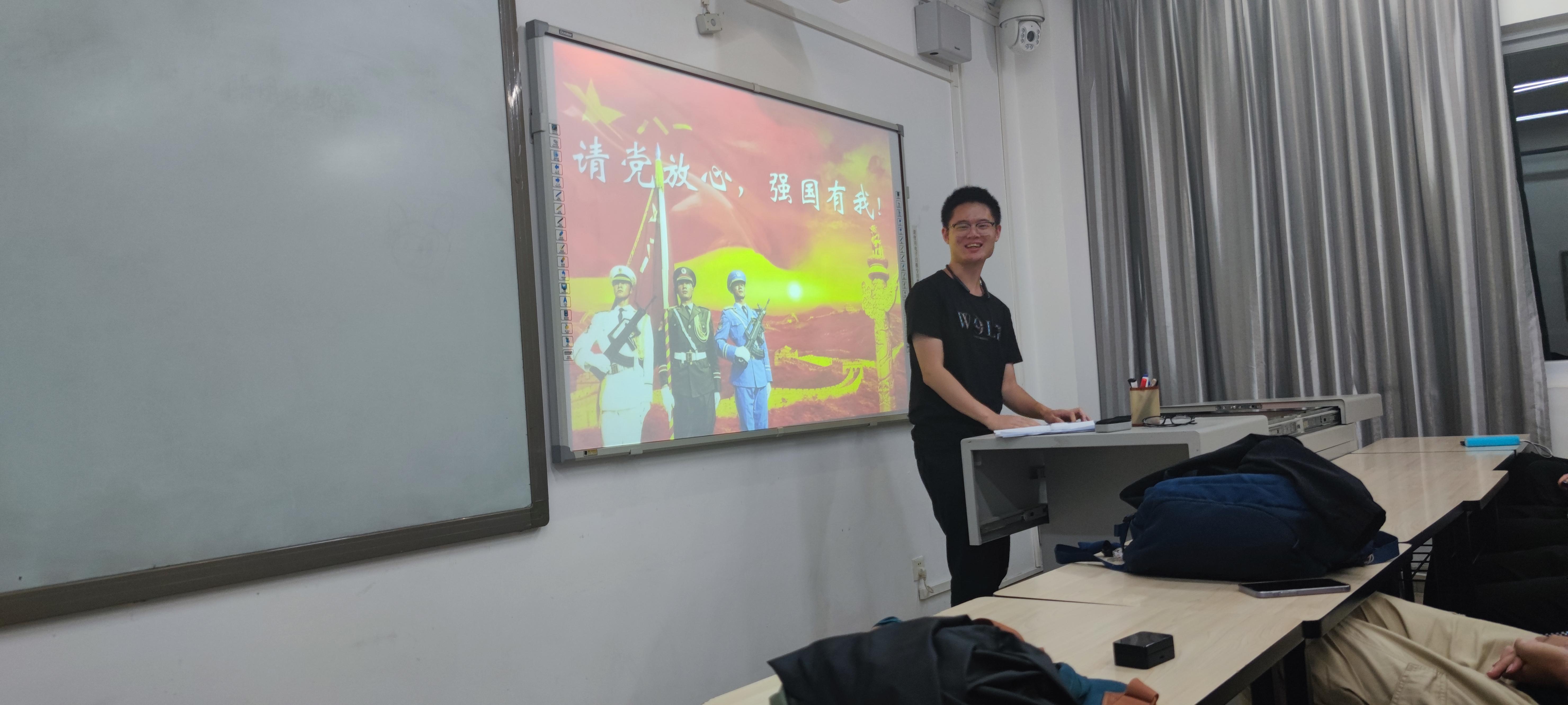团日活动第三项,由学习委员陈加林进行“请党放心,强国有我”主题演讲,呼吁支部成员坚定拥护党的领导,铭记中国共产党为祖国为人民所做出的巨大贡献,在新时代的巨浪来临时,勇立时代潮头,中流击水,奋楫前行,为早日实现中华民族的伟大复兴而不懈奋斗!在学习委员铿锵有力的声音下,每位同学都为之感动,为之振奋,同学们的眼里,藏不住星子一样的光彩。最后,陈加林同学说道;“时代的接力棒已然传至我们手中,作为祖国的希望,民族的未来,我们理应为党,为祖国,为中华民族努力奋斗,矢志不渝!”