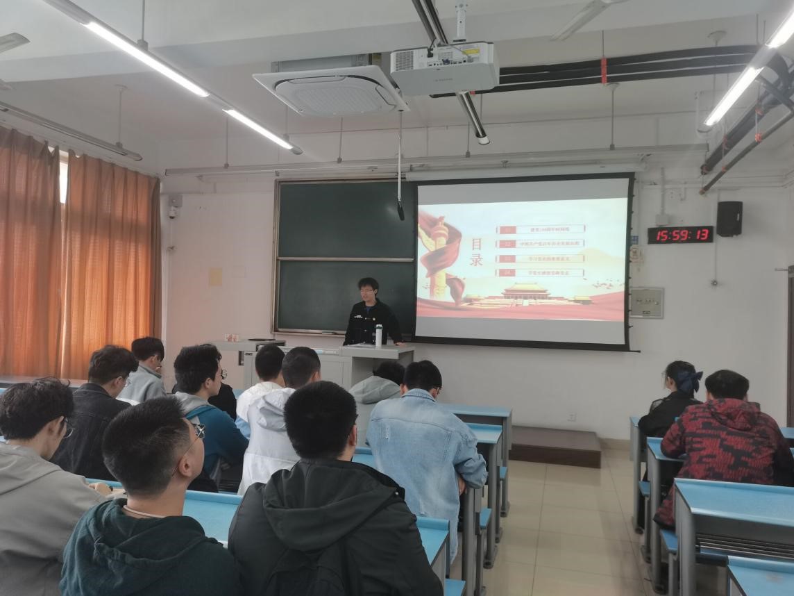 为加强对支部成员的思想政治引领,认真学习习近平总书记在党史学习教育总结大会上的重要讲话精神,引导支部成员将个人成长融入国家发展大局,并响应学院团委“春季第一堂团课”的号召。应用数学2020级2班团支部于10月26日14:30在X2534开展了“庆祝中国共产党成立100周年”主题团课。本次团课由团支部书记闫宇汉主持,支部36名团员按时参加,学院团委科创部李西曼旁听。