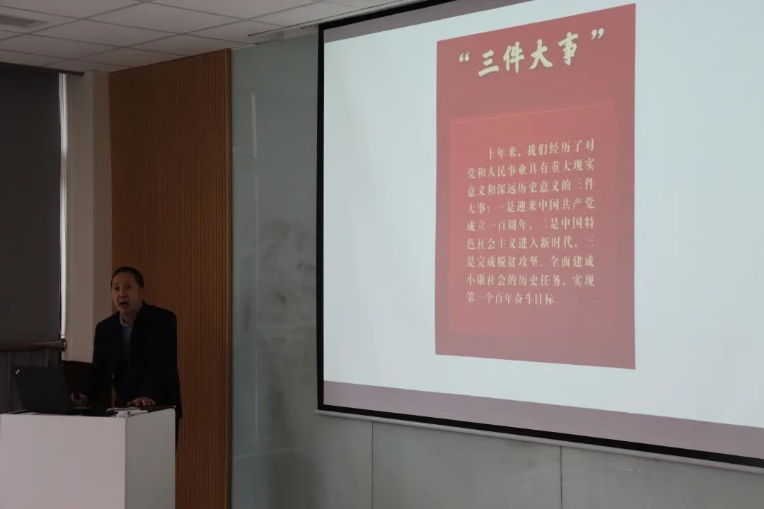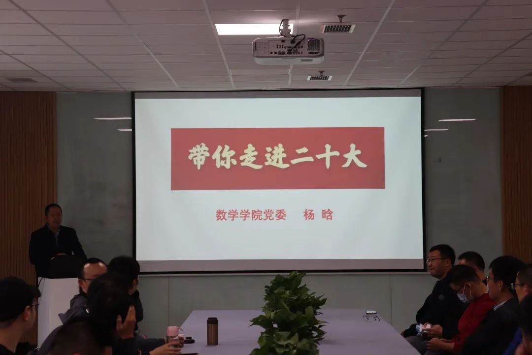 活动伊始,杨晗院长以刚刚召开的二十大为切入点,以数学人的角度来解读二十大的报告内容。在这次讲话中,杨晗院长提到了大会主题、三个务必、三件大事、中心任务等内容,这些均与党的二十大报告所提出的中国式现代化息息相关。杨晗院长用生动的口吻为在座的各位老师讲述了在二十大报告中出现的关于中国式现代化的“五个特色”、中国式现代化的本质要求和如何实现中国式现代化这一战略性目标的内容。除此之外杨院长重点谈到了二十大报告中对教育工作的重视,并以此为切入点,着重强调了高校教师应该将教书育人作为工作中的主要职责。同时,杨院长特别谈到了教育研究部门对基础研究工作的大力支持,他叮嘱各位青年教师作为茄子视频 的一员,在基础研究工作方面,要做到不受拘束,自由发展。杨晗院长对二十大报告内容的解读体现出学院心系国家事,肩扛国家责,同时也展现了学院对青年教师的关切。