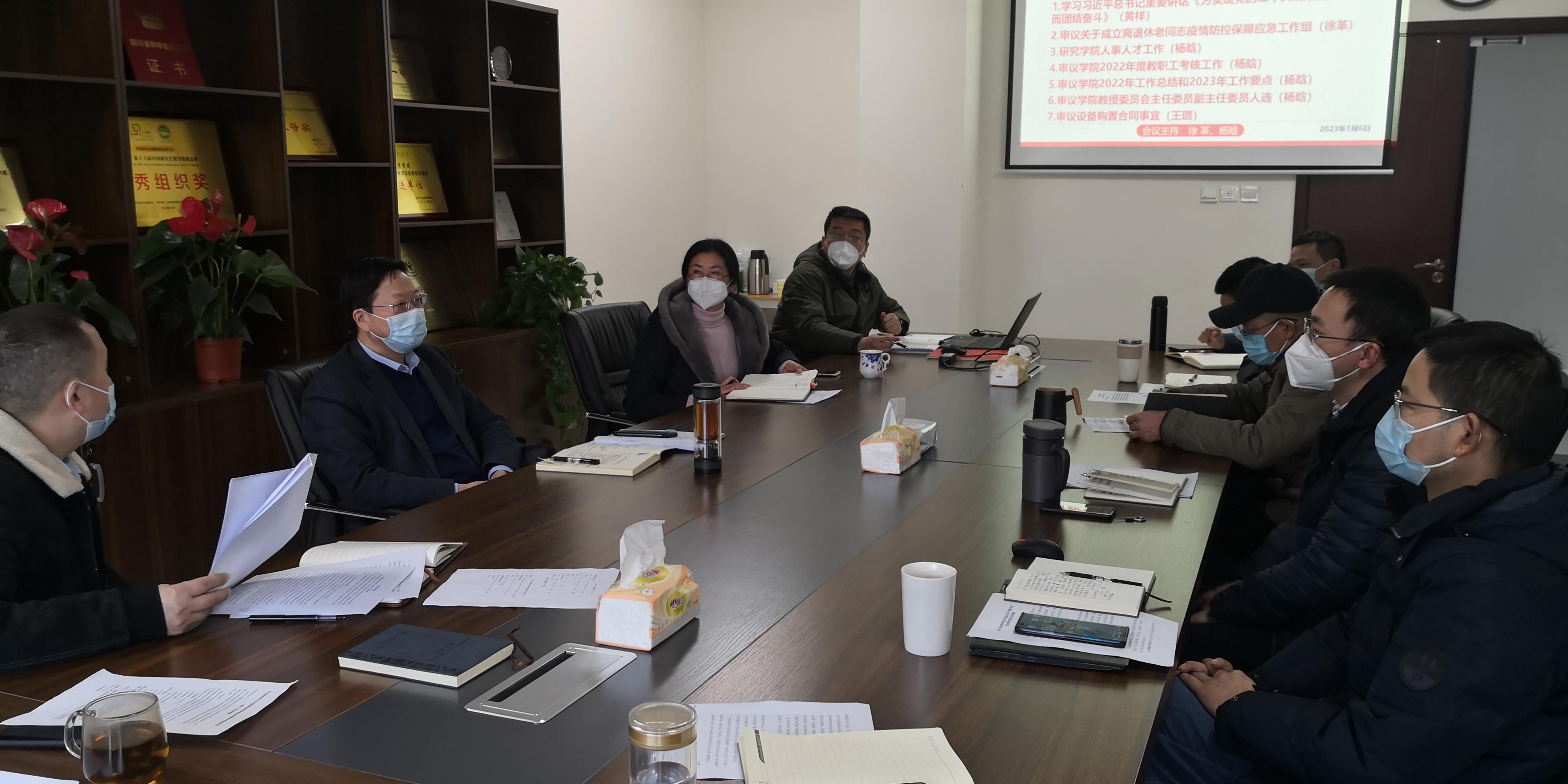 离退休老同志疫情防控保障应急工作组;研究了学院人事人才工作;审议了学院2022年度教职工考核工作、学院2022年工作总结和2023年工作要点、学院教授委员会主任委员副主任委员人选、设备购置合同事宜。