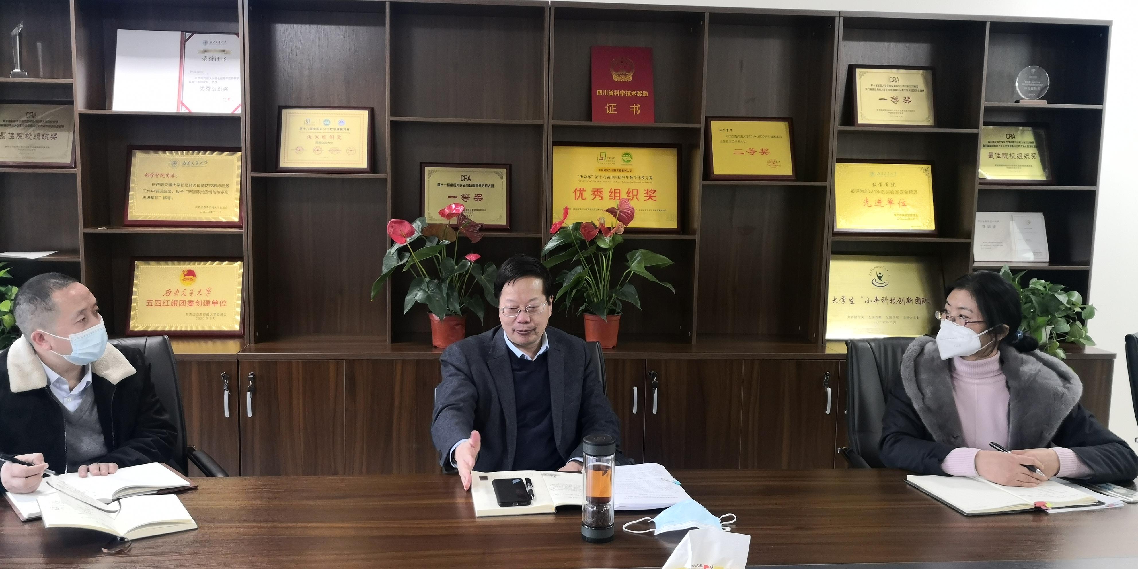2022年度在学科建设、人才培养、科创竞赛等方面所取得的成绩和进步,并从四个方面提出了意见和建议。一是持续深入学习贯彻党的二十大精神和学校第十五次党代会精神,大力实施人才强校战略,持之以恒抓好人才工作,多措并举,加强人才引育工作,进一步提升学科建设水平。二是作为理科基础学院,数学学科在学校的发展格局中有着举足轻重地位,加强数学基础学科建设,更好地发挥数学学科对其他优势学科的支撑作用。要做大做强教学和课程思政工作,注重教材建设,做好教学名师、教学团队等的培育和规划工作。三是注重科研工作,作为基础学科,应加强传统科研与特色科研相结合,主动加强对外合作,加强与学校各大学院的合作,促进学科交叉融合,融入交大特色。四是抓班子、带队伍,团结和带领全体教职员工,以改革创新、奋发有为的精神状态,推动学院建设发展。加大学术骨干培养力度,加强教学团队建设,重视培养提高青年教师业务水平,使一批优秀人才脱颖而出,在教学、科研工作中做出突出成绩,成为教师队伍中一支重要的生力军。