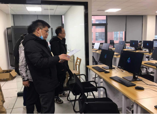 检查组对相关实验室进行了全面检查,重点对实验室的设备布局、安全消防设施的摆放室内线路安全承载、门窗防盗功能、规章制度的上墙、值日打卡记录等进行了专项检查。恰逢此次贴息贷款项目的部分更新设备安装、调试、验收等环节,李志辉副院长连同校内外三名专家结合招标文件、购置合同等文件开展实地验收,逐项核对设备数量、规格型号、性能参数等,进行现场测试,做到事无巨细,严谨规范。通过检查实验室设备数量及性能参数符合招标合同、安装摆放规范场地干净整洁;实验室管理和安全制度健全,值日打卡记录清晰,安全责任到人,实验室运行状况良好。鉴于数学实验实践中心位于五教,与学院主要实验室较为分散,加之实验室门锁年久失修,存在一定安全隐患,学院在召开的2023年第二次党政联席会一致同意进行线路改造以及门锁的更换,大大提升了实验中心的安全保障硬件条件。李院长强调,学院要不定期开展实验室安全检查工作,层层踩实,将责任落实到人,务必仔细排查安全隐患并切实做好实验室安全隐患整改工作,确保全院师生人身安全,保障新学期实验教学工作的正常秩序。