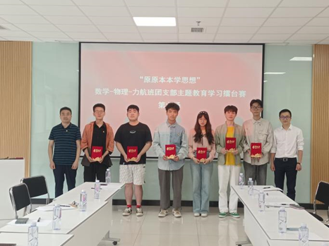 黄祥副书记共同为“原原本本学思想”数学-物理-力航-化学班团支部主题教育学习擂台赛的最佳主讲人李沫杉同学、邱旭同学、李哲羽同学、龙园杰同学、陈建华同学、辛家博同学颁发获奖证书。