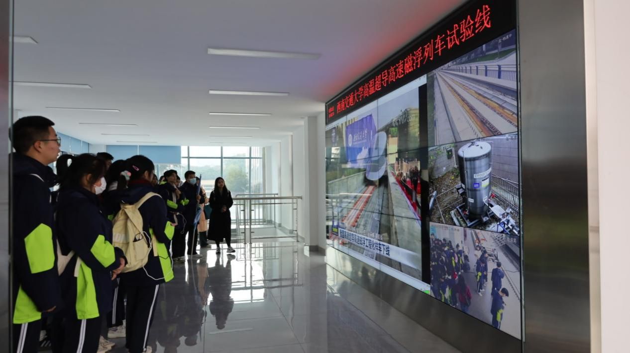 在磁悬浮交通研究中心,同学们观看了磁悬浮列车模型,并体验到了磁悬浮技术的魅力。