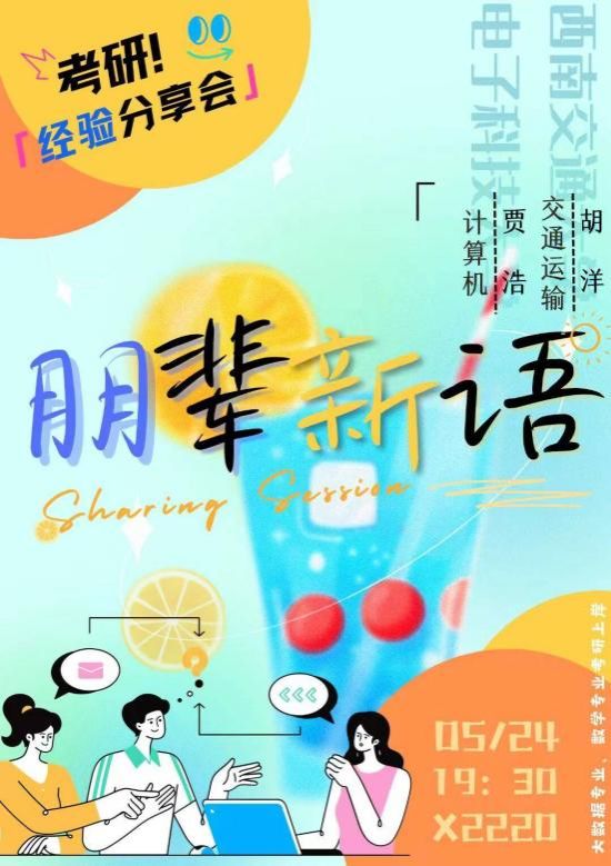 于5月19日和5月24日开展了两期“朋辈新语”经验交流活动。活动邀请了韦杰、朱秀玲、张翔、贾浩、胡洋五位同学,向立志保研、考研的同学分享了自身经验,并解答了相关疑问。