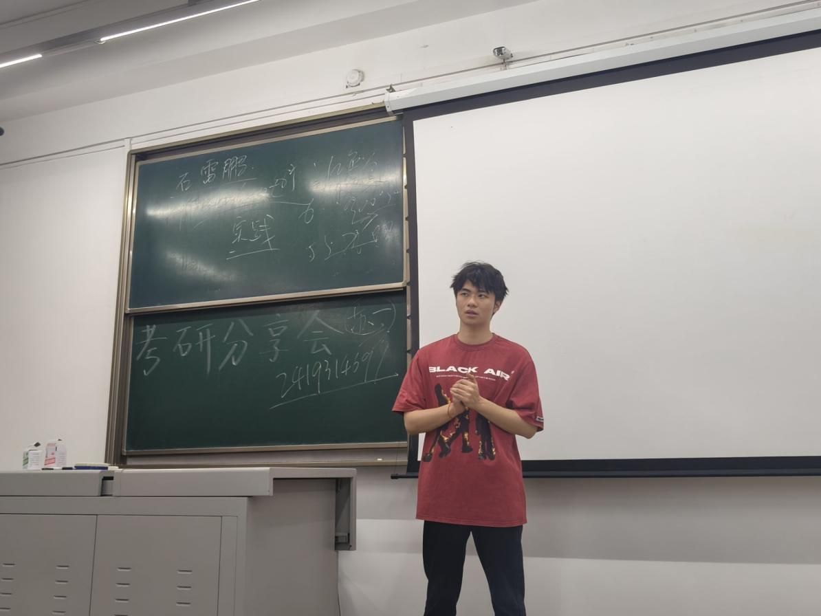 5月24日晚7时30分,“朋辈新语”考研经验分享会在X2220举行。考研成功的贾浩和胡洋同学进行为即将踏上考研征程的同学们分享了宝贵经验。胡洋首先建议大家根据个人意愿选择目标院校,并强调了保持自信的重要性。他详细阐述了政治、数学和英语的复习方法,特别指出了单词记忆在复习中的关键作用,并推荐了有效的复习资料和应试技巧。接着,贾浩结合个人经历,分享了各科复习策略。他强调了复习顺序和目标设定的科学性,以及个人备战考研的经历和复试技巧。贾浩特别提到了网络信息在院校选择中的重要作用,并为同学们提供了详细的复习时间线和个性化建议。
