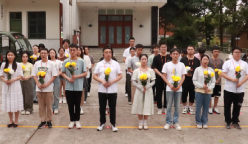 全体师生在邓稼先旧居前举行献花仪式,深切缅怀革命先辈。随后,全体党员在旧居前庄严宣誓,重温入党誓词。