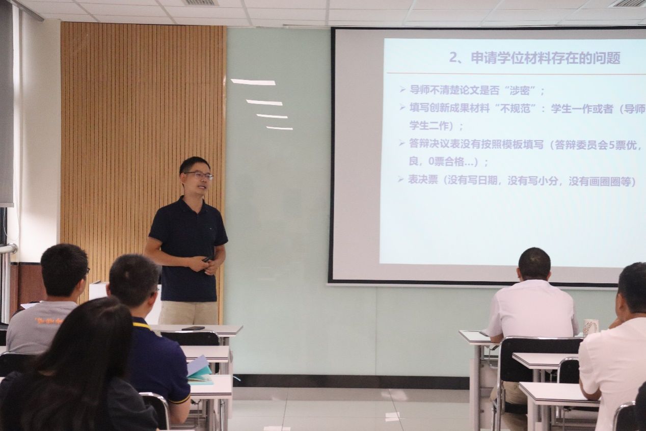 会议最后,杨晗院长总结发言。他表示,导师是研究生的第一责任人,不仅要将学生“招进来”,更要将学生“送出去”。同时,导师自身也需要加强自身学习,规范学术研究,提高纪律和规矩意识。