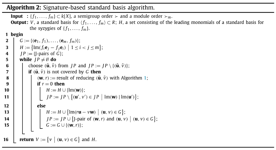 基于GVW算法的框架,鲁东老师与合作者利用推广的Mora范式算法克服无限集合没有极小元的困难,给出任意半群序下的签名标准基算法,首次从理论上证明算法的正确性和终止性。该签名标准基算法是多项式环上GVW算法的进一步推广,它适用于所有的项序,包括全局序、局部序和混合序,使得在任何情形下均可使用该算法进行多项式系统的高效求解。匿名评审人评价“this work is a leap forward in signature Gröbner bases”。