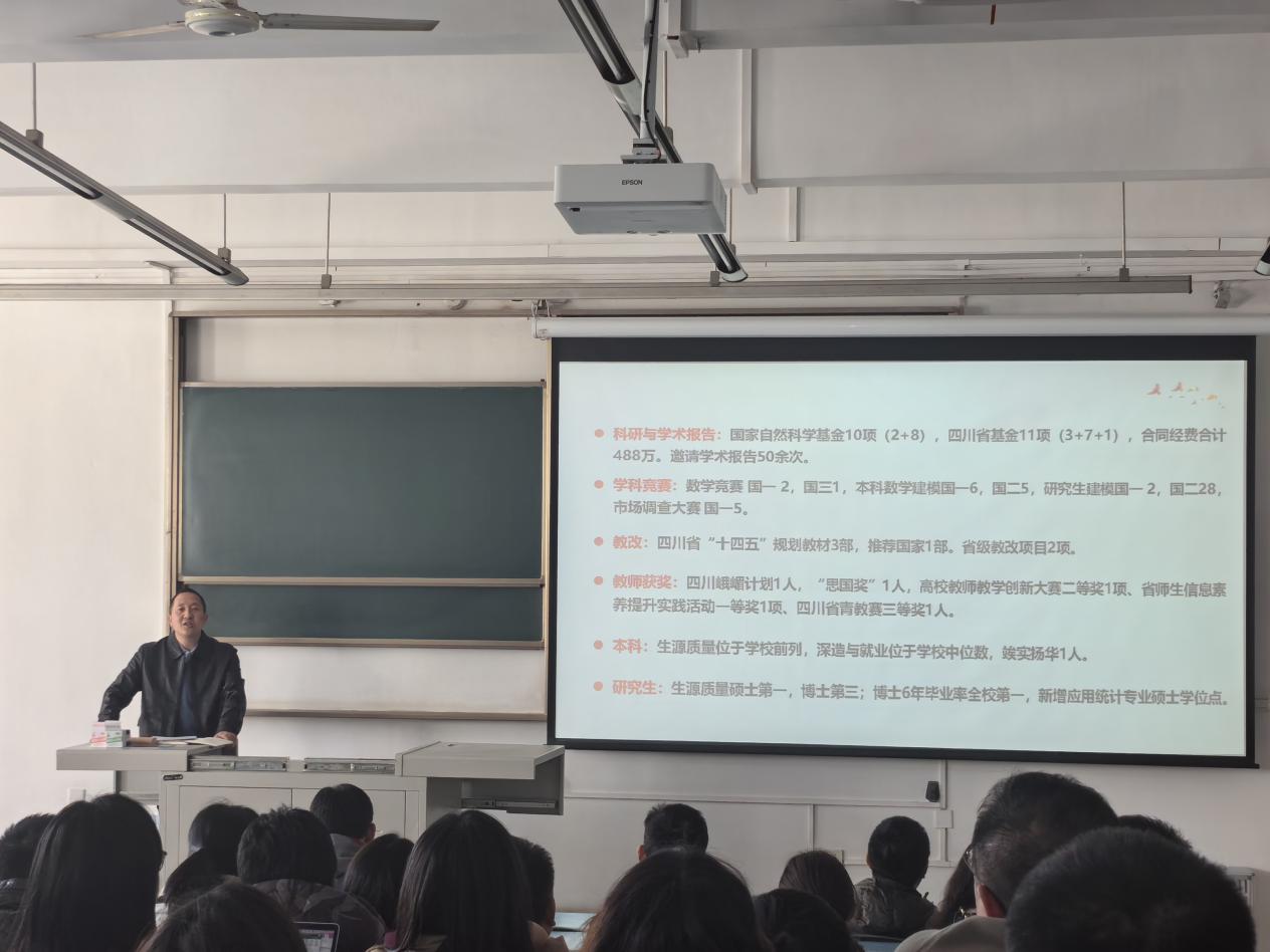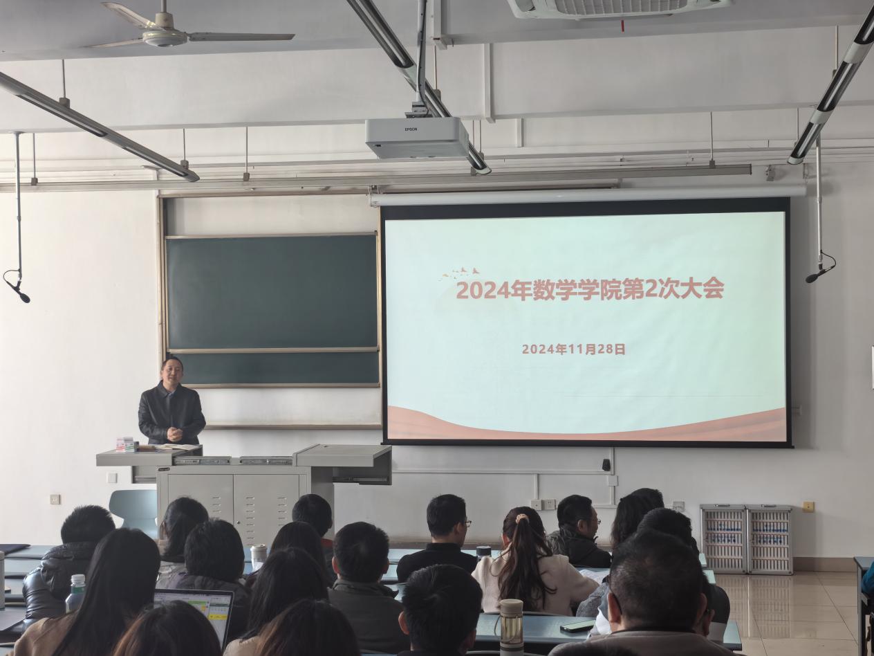 杨晗院长通报了学校院长工作会议精神,并介绍了学院一年来在人才培养、学科建设、科研教改等方面取得的令人鼓舞的成绩。他强调,要深刻理解学校高质量发展规划中的“文理内涵支撑”,积极发挥数学学科优势,加强与其他学院专业的合作交流,促进跨学科人才培养;要充分利用好智能手段,加强教学改革建设,积极开发应用场景,落实教育数智化战略。