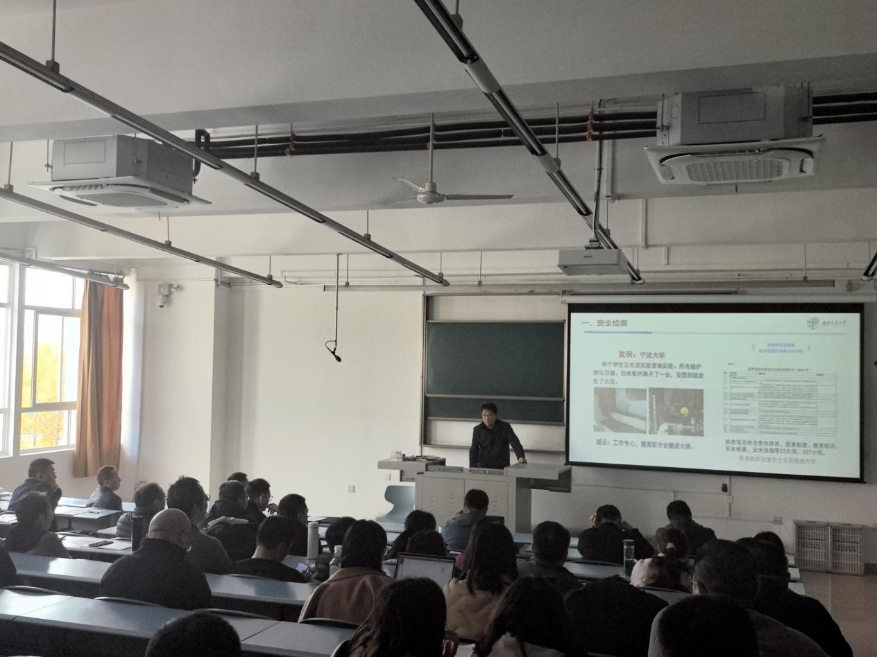 李志辉副院长通报了近期实验室建设、安全工作、保密工作,并通过案例警示,对全院教职工开展安全、保密教育。号召全院师生提高安全防范、增强保密意识,筑牢维护党和国家保密安全的牢固防线。