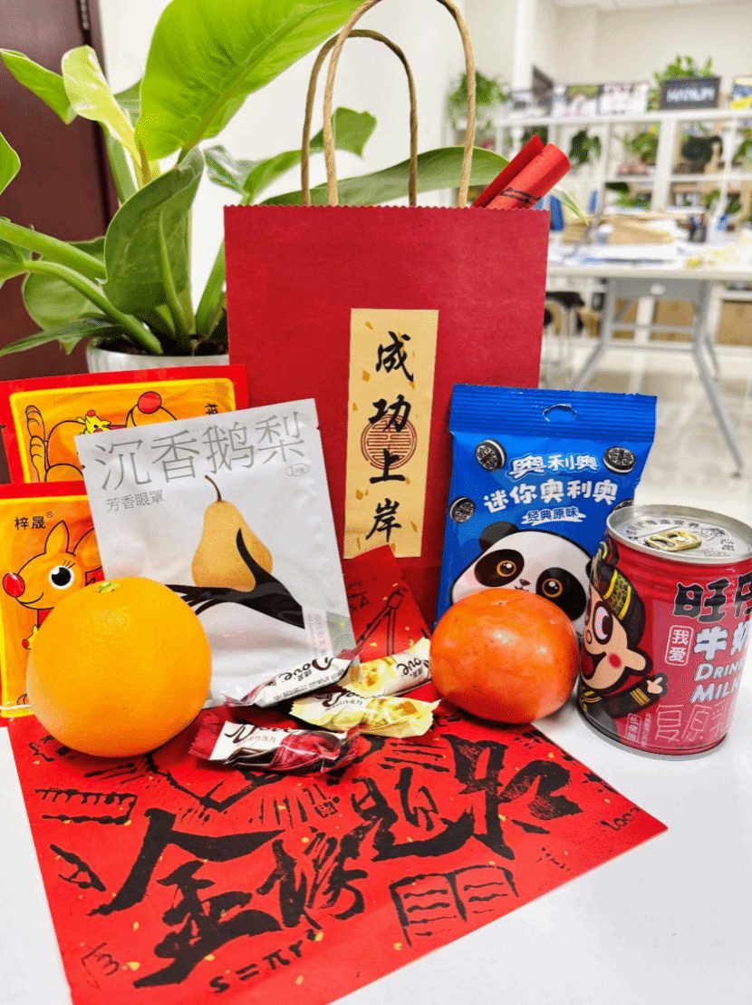 为考验学子准备了“考研加油包”,一袋袋“一研为定”、“成功上岸”、“金榜题名”,一声声祝福与加油,激励着每位考生在最后的黎明破晓时刻,去追逐属于自己的光。