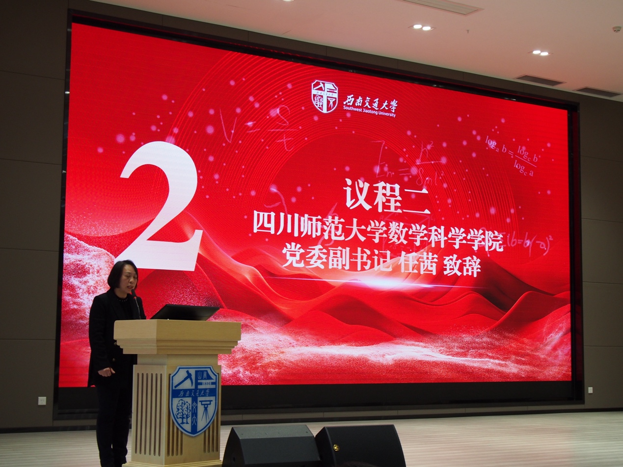 四川师范大学数学科学学院党委副书记任茜代表兄弟院校致辞,向茄子视频
