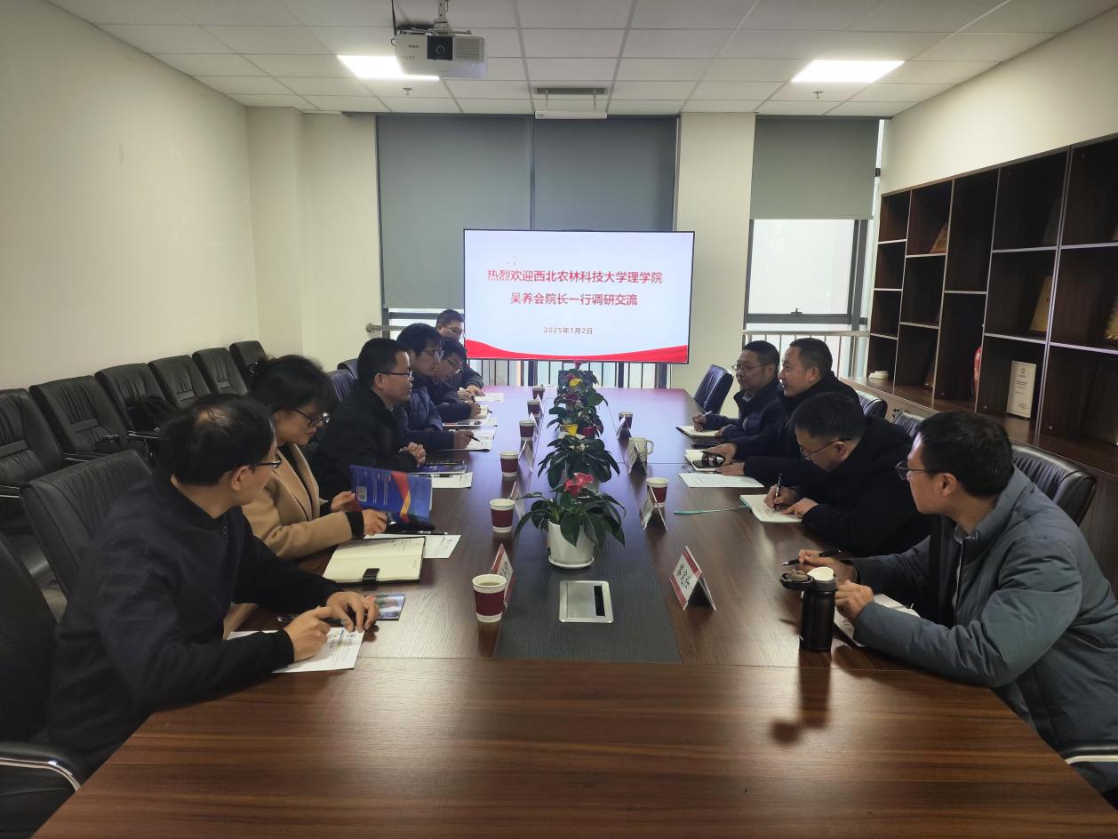 2025年1月2日上午,西北农林科技大学理学院吴养会院长一行到茄子视频 调研交流,茄子视频 院长杨晗,副院长潘小东、王璐,专项工作负责人黎定仕参加会议。