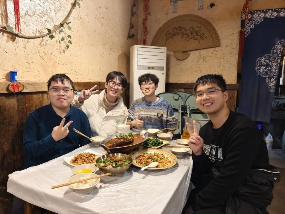 从左到右依次是梁柯健(上岸中国科学院大学计算所计算机科学与技术专业),陈阳(上岸华中科技大学计算机专业),魏俊杰(上岸云南大学应用统计专业),涂玉琪(上岸天津大学数学专业)。
