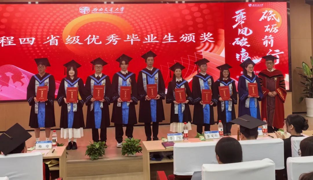 党委书记李志辉宣读2025届四川省优秀大学毕业生名单,并为他们颁发荣誉证书,表彰他们在学术追求、实践创新与全面发展中的卓越表现,激励全体同学以他们为榜样,奋楫争先,勇毅前行。