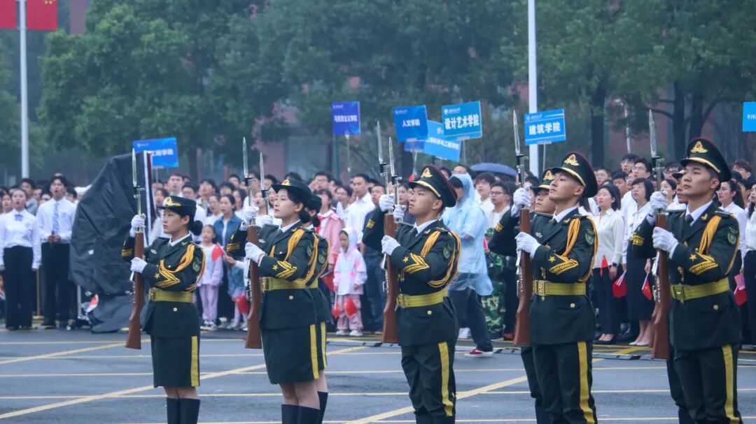 2025级本科各团支部的同学们神情肃穆,面向国旗行注目礼。伴随着雄壮嘹亮的国歌声,鲜艳的五星红旗冉冉升起,迎风飘扬。