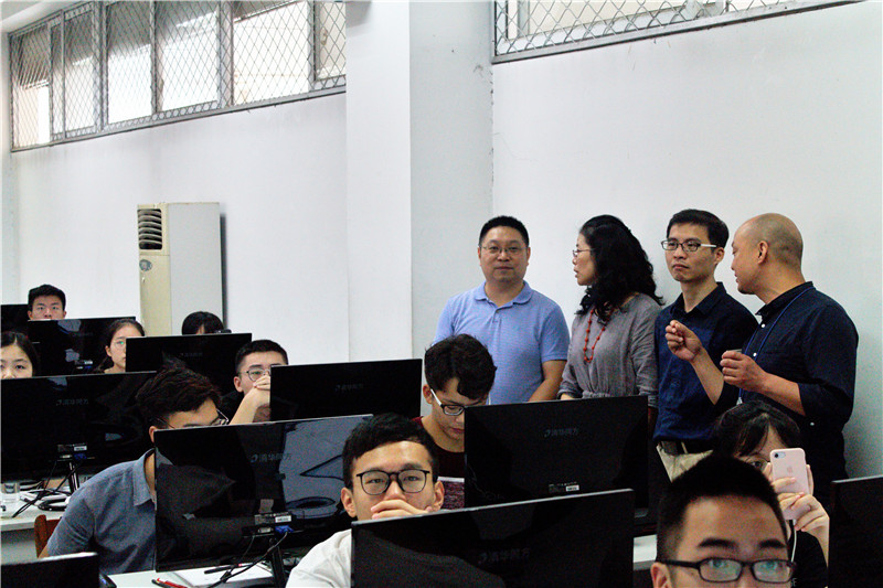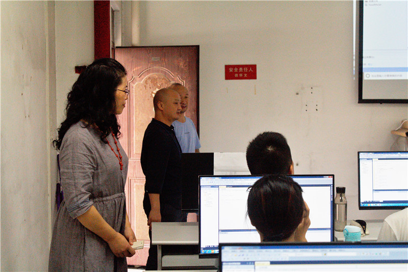 党委书记徐革、副院长王璐、党委副书记杨育鸿和实验中心主任潘志刚一行,前往2教和7教机房,检查学院暑期实习工作开展情况,并看望了实习同学。
