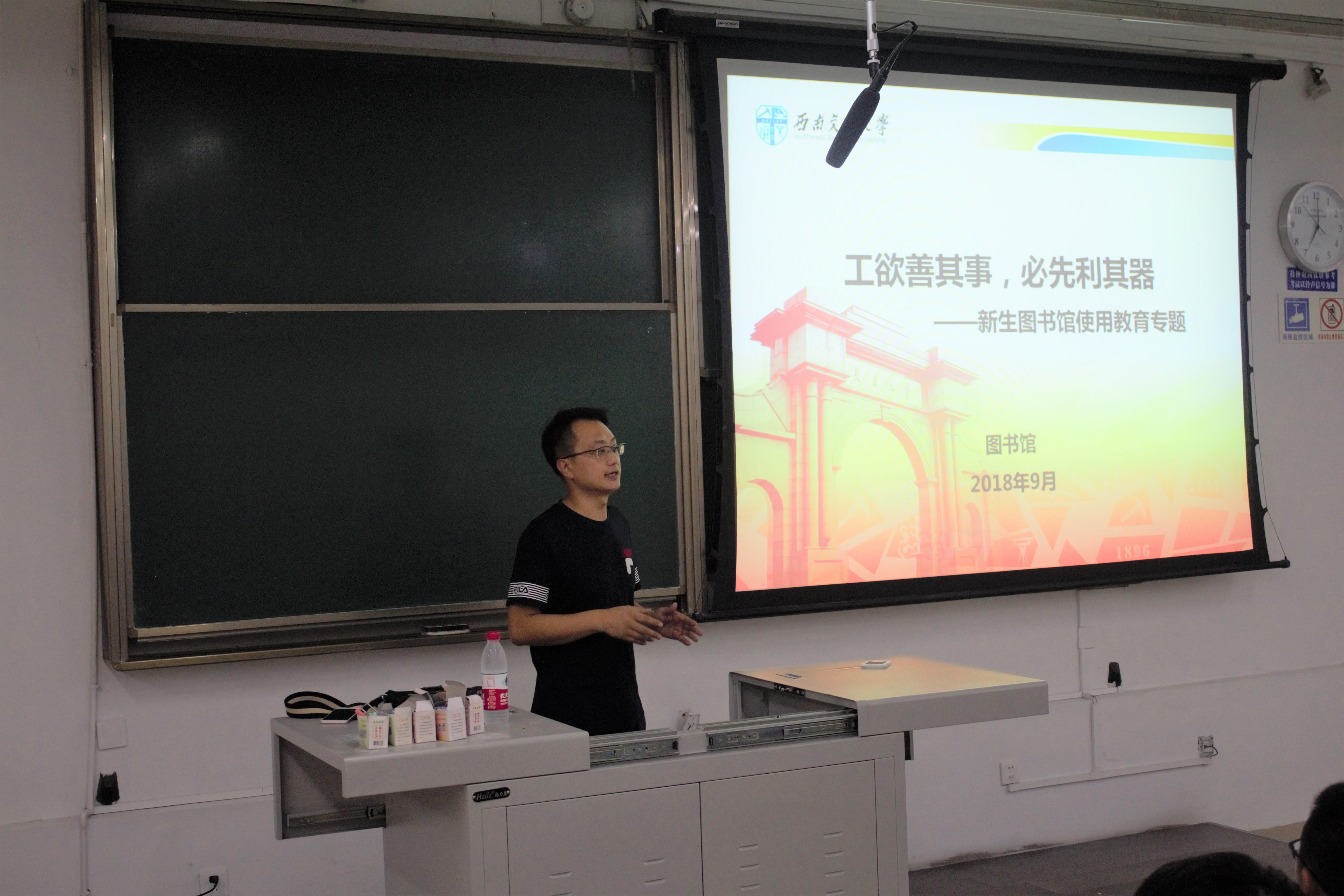 图书馆主讲人都兴宇老师分别从三个方面向本科新生讲述现今图书馆的概况。“工欲善其事,必先利其器”是本次图书馆入馆教育的专题。一个事情想要做好,必然要有好用的物器从外帮助,旨在告诉新生要好好利用图书馆的一切资源。紧接着,都老师引用了哈佛校长的观点,“人与自然的和谐统一”,要求新生好好认识和了解图书馆。犀浦校区的图书馆为大家提供了学习、研究和娱乐的物理空间,是集文化、交流、学习中心和育人中心于一体的现代化新型图书馆。随后,都老师向大家介绍了茄子视频