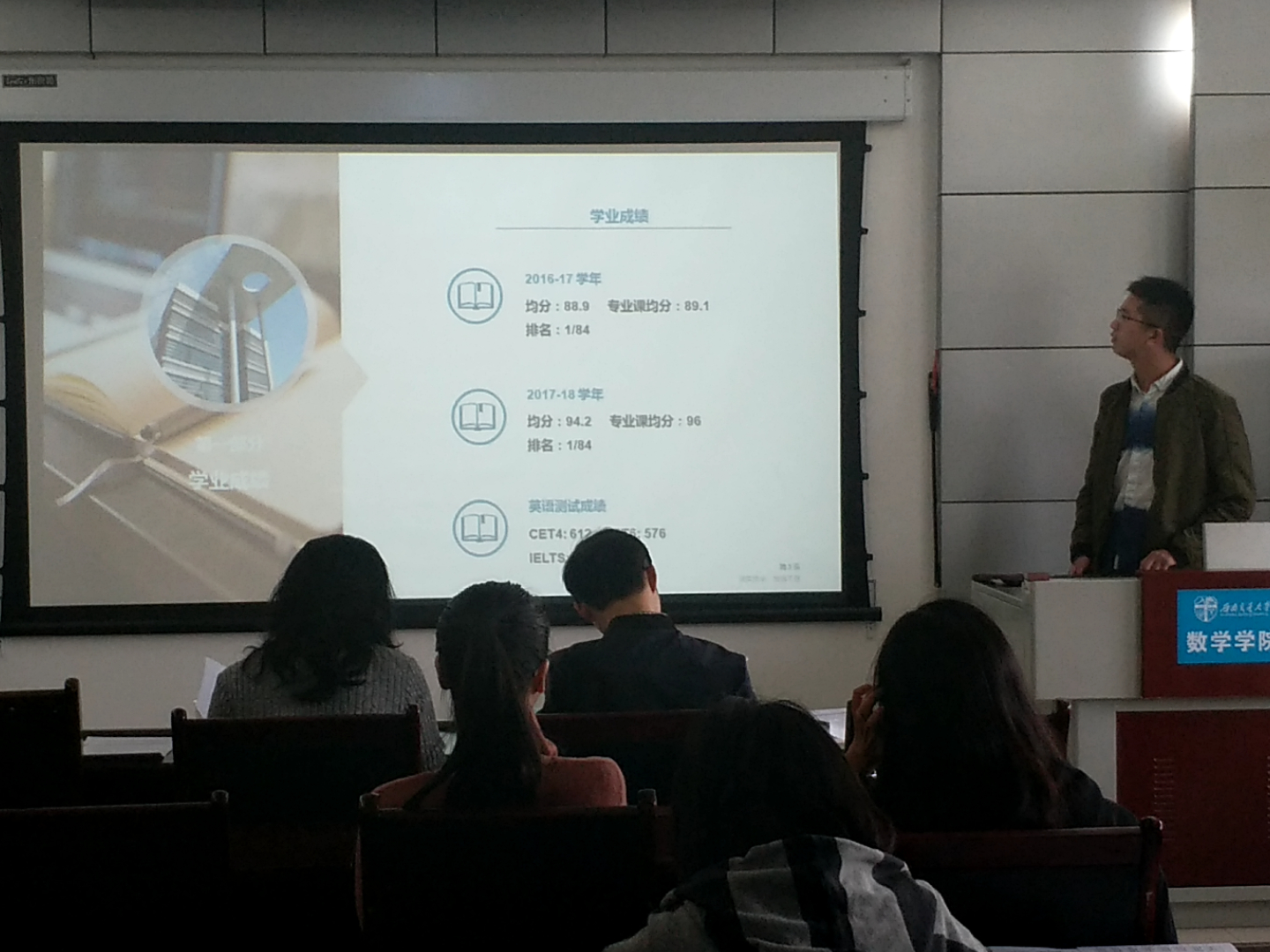 首先进行的答辩是竢实扬华奖章答辩,答辩人刘冰列举了近年来所收获的荣誉,把他的成就归功成其大学生涯中的所遇所为,展示出了“不凡的经历塑造不凡的人”,突出了自身的强劲实力和对科学的不懈追求。紧接着是省级优秀毕业生的评选答辩,答辩人张雁灵从学习成绩、学生工作、科研竞赛以及社会实践四部分划分了她的大学生活,展示出了全面发展的生活态度以及优秀的综合实力。继而是三好标兵的评选答辩,由郭奥洋、杨思哲、郑伟杰、蔡逸、伍舒妮、孙济任、彭炜、张璇八位答辩人向大家展示自身的能力,从学习情况、科研竞赛、学生工作以及社会工作等方面更详尽地突出他们自身的能力,使得每一位同学自身具有的优秀特质都得以展现。