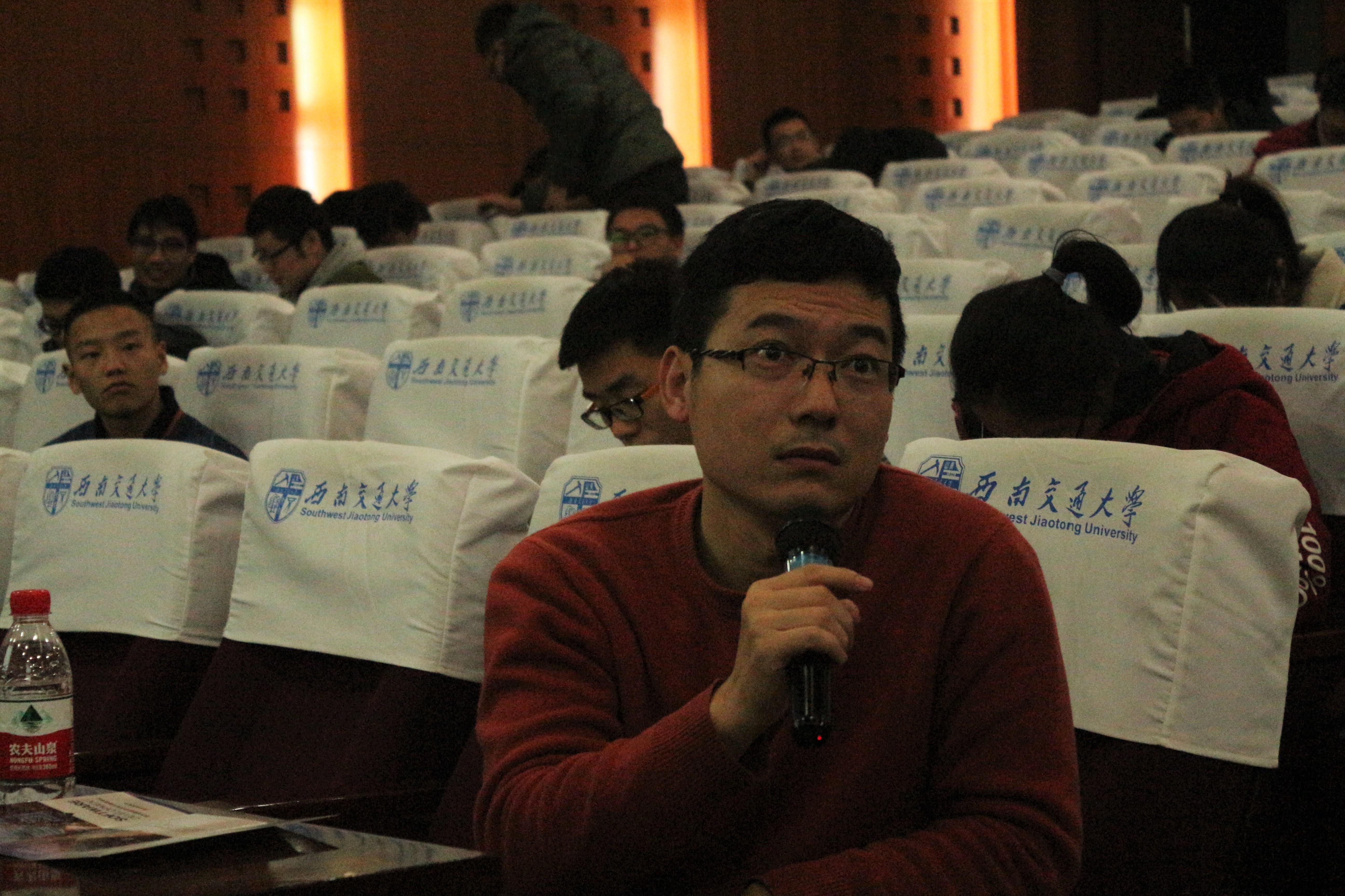 经历了短暂的抽奖娱乐环节后,严国龙专家从项目管理、代码托管和代码提交三个方面详细介绍了华为开发云服务,并在介绍过程中穿插了问答环节。在问答环节中,四名学生从项目管理、服务账户的提供以及开发云与其他类似服务的优势对比方面展开了提问,此外,谢老师也从软件开发云服务在高校的应用方面提出问题,并与华为负责人展开了深入的讨论,在场的学生都被这精彩的讨论深深吸引。