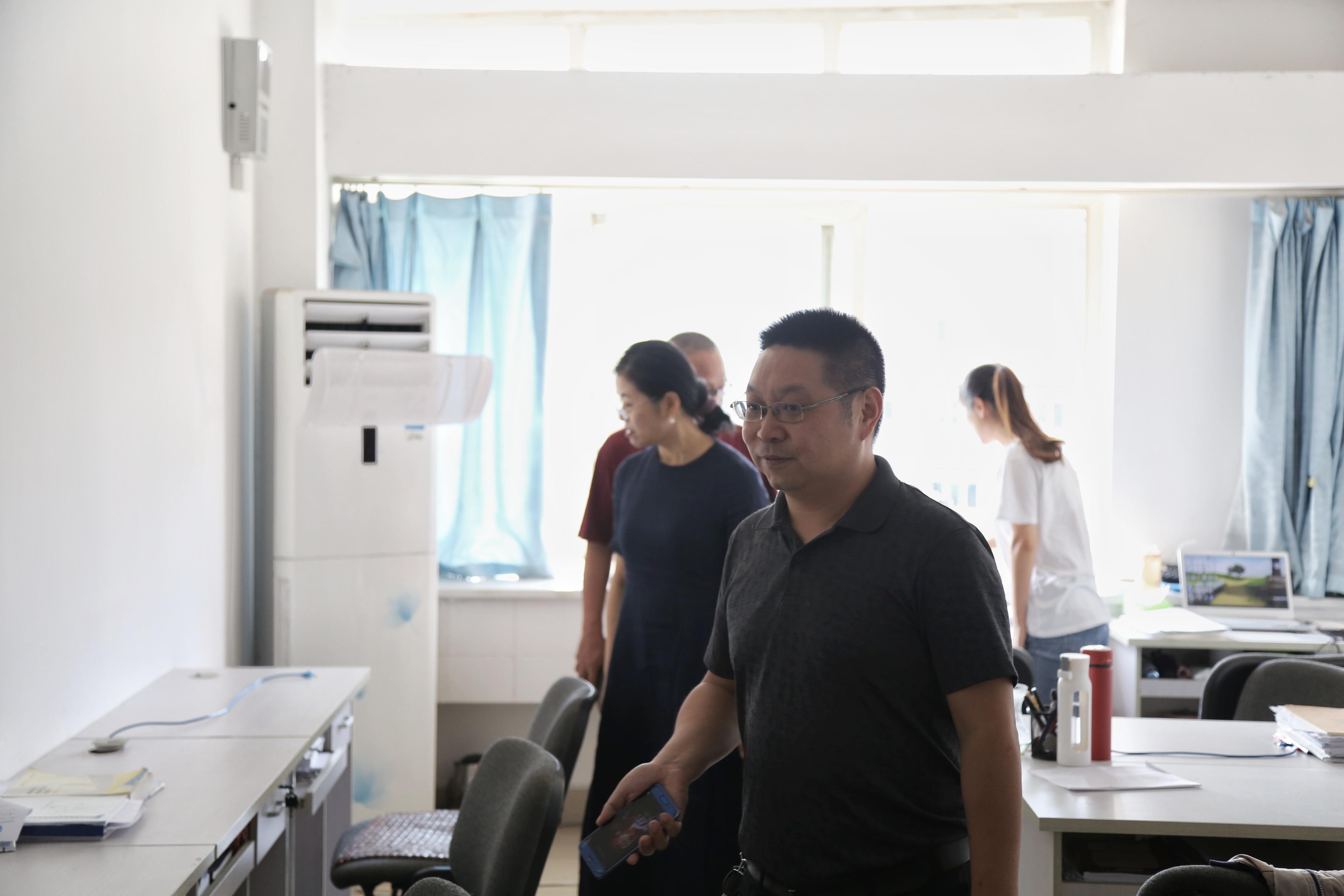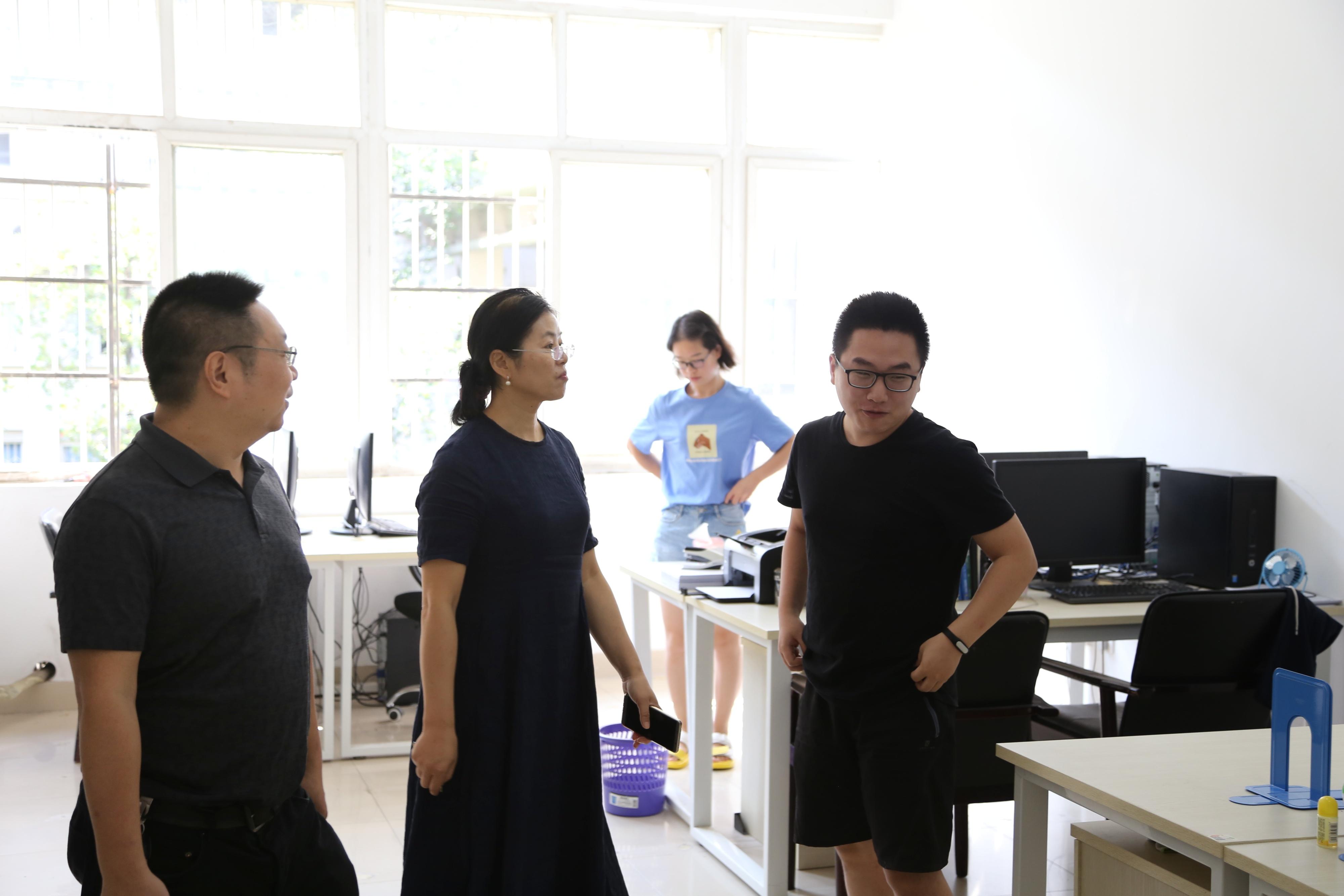 党委书记徐革、学院副院长王璐对学院的实验室和办公区进行详细的走访检查,并看望了各实验室、工作间的老师和同学。