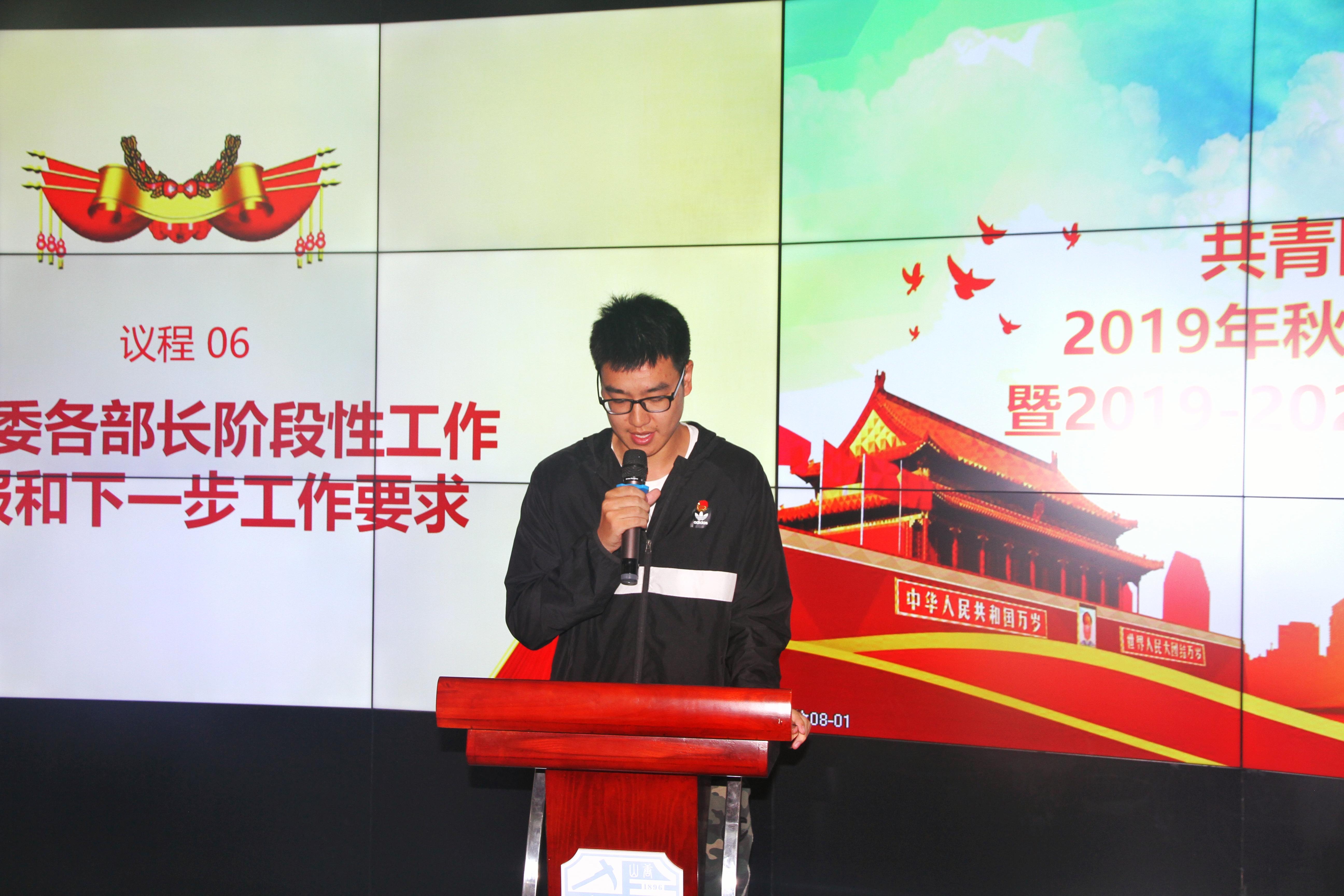 会议第三项,团委书记邓思然老师为同学们讲授“第一堂团课”。在展示《四川省中长期青年发展规划》与《团团说“青春志愿,爱在社区”》等视频之后,全体同学重学团章团史,力争做新时代合格团干部。邓老师从共青团的性质、职能、组织、标志、干部等多方面向同学们进行了讲说,让同学们进一步深入了解共青团。