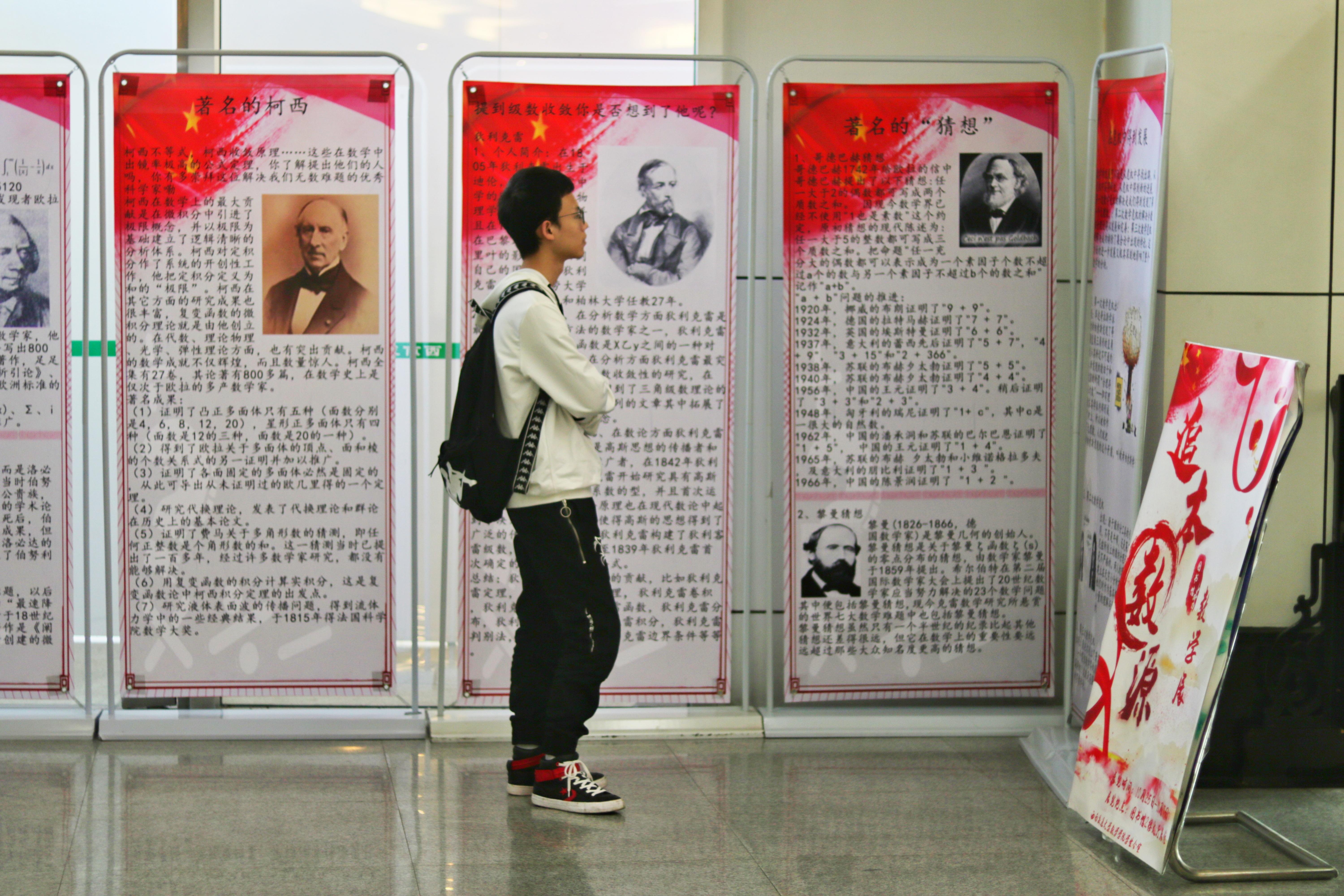 为了加深全校同学对数学史的了解,提高数学素养,茄子视频 在犀浦校区图书馆二楼内大厅处开展了展览活动。