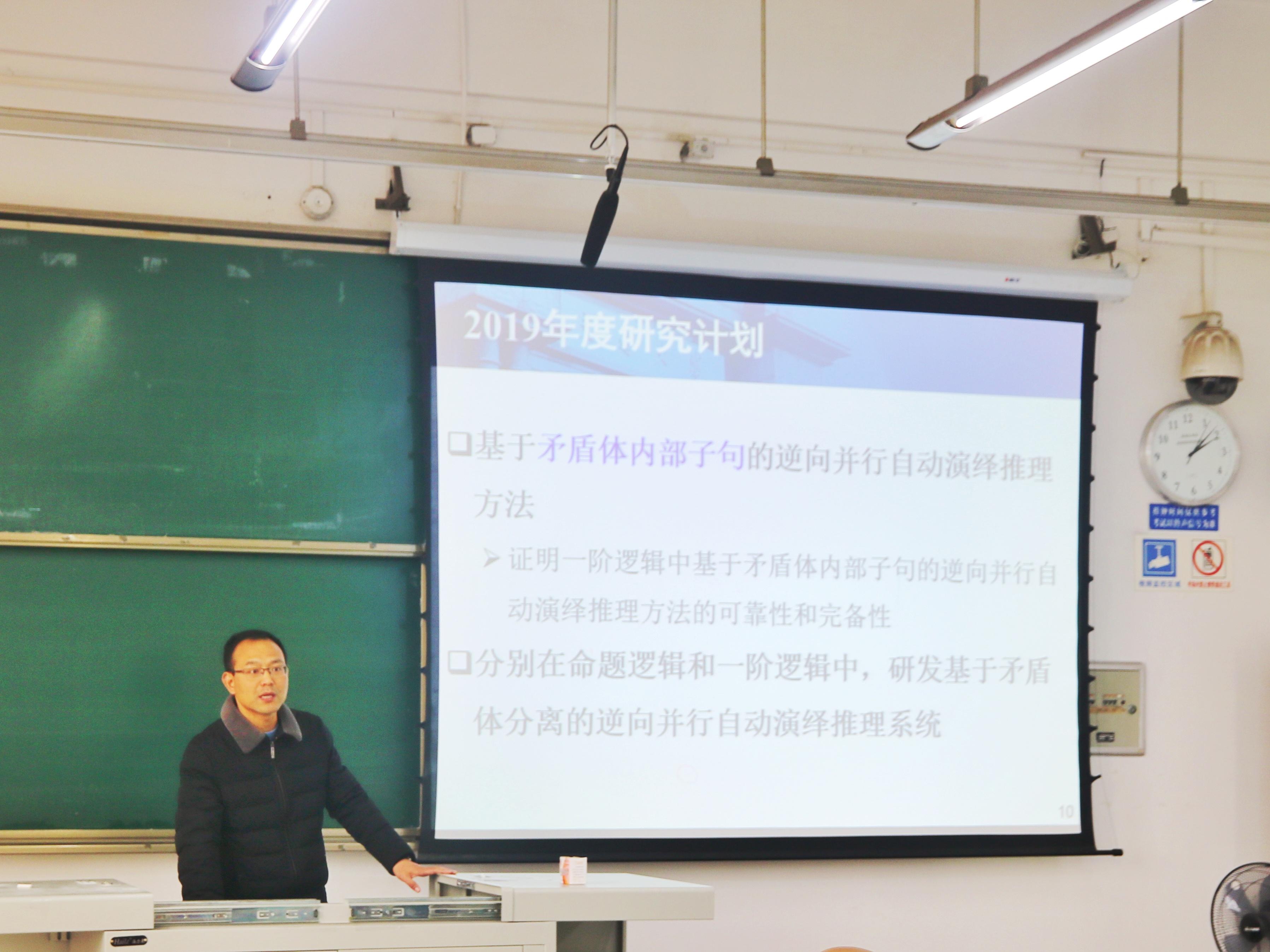 首先进行的是在2423开展的2017年科技创新项目验收工作。各位参加答辩的老师介绍了自己的研究目标与成果,包括要求提交的论文数量与实际提交数量。检查过程中,王璐副院长不时与答辩老师讨论其研究内容,并为老师们未来的研究方向提出了建议。随后老师们汇报了自己参加国内外学习交流活动的情况,并提出了接下来的研究计划或是计划更换的新研究对象。
