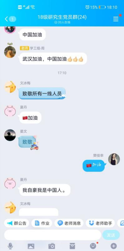 当前,疫情防控工作仍处于关键时期,在这没有硝烟的战场上,希望2018级研究生党支部的每一位党员同志都要积极的行动起来,在严峻的疫情形势下,作为一名党员,我们应该比任何时候都更加坚定的相信我们党中央,更加明确我们的初心和使命,真正做到“ 不忘初心,牢记使命,抗击疫情,从我做起!”