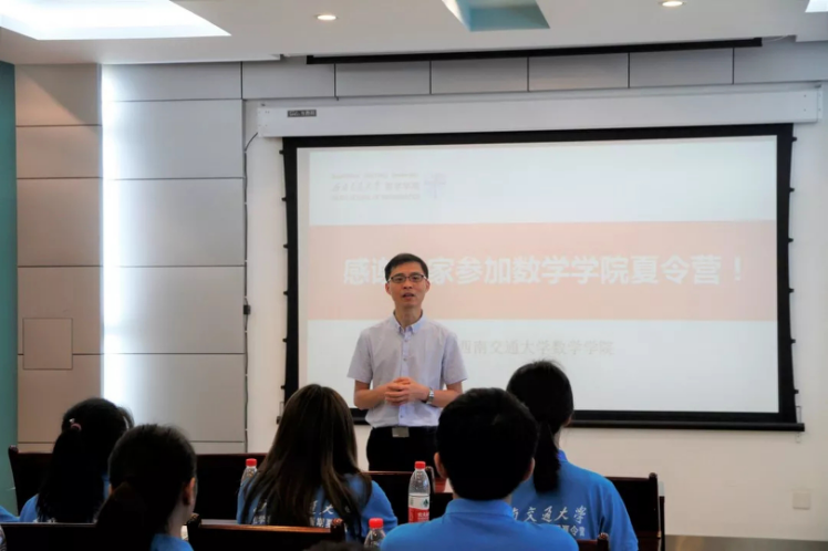 的教育概况,杨院长期望同学们积极利用参加夏令营的机会,开阔眼界,增长见识,充分了解西南交大丰富的科研资源,此外,杨院长提到,如今是大数据时代,数学更是起着举足轻重的作用,期望营员们领悟数学在人类生活中的重要作用和无穷魅力。开营仪式结束后,全体营员前往竢实扬华碑前拍摄了合照。