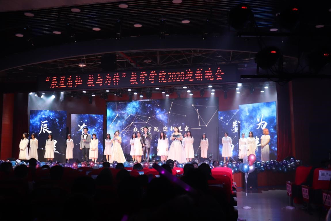 党委书记徐革教授为迎新晚会致辞。徐书记首先对2020级新生的加入表示了欢迎。接着,徐革书记总结了2020年学院取得的丰硕成果,从毕业生升学率、科研竞赛到社会实践,学院的每一位师生都同心共力,取得了突出的成绩。然后,徐革书记在阐述“辰星有灿,数与为伴”这一主题意义的同时也对支持本场晚会的师生表示了感谢。最后,徐革书记给2020级同学们送上祝福与希望,希望同学们能够笃行致远、砥砺前行。