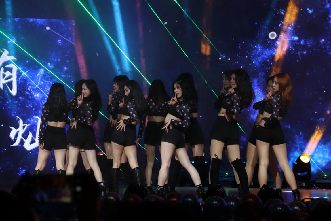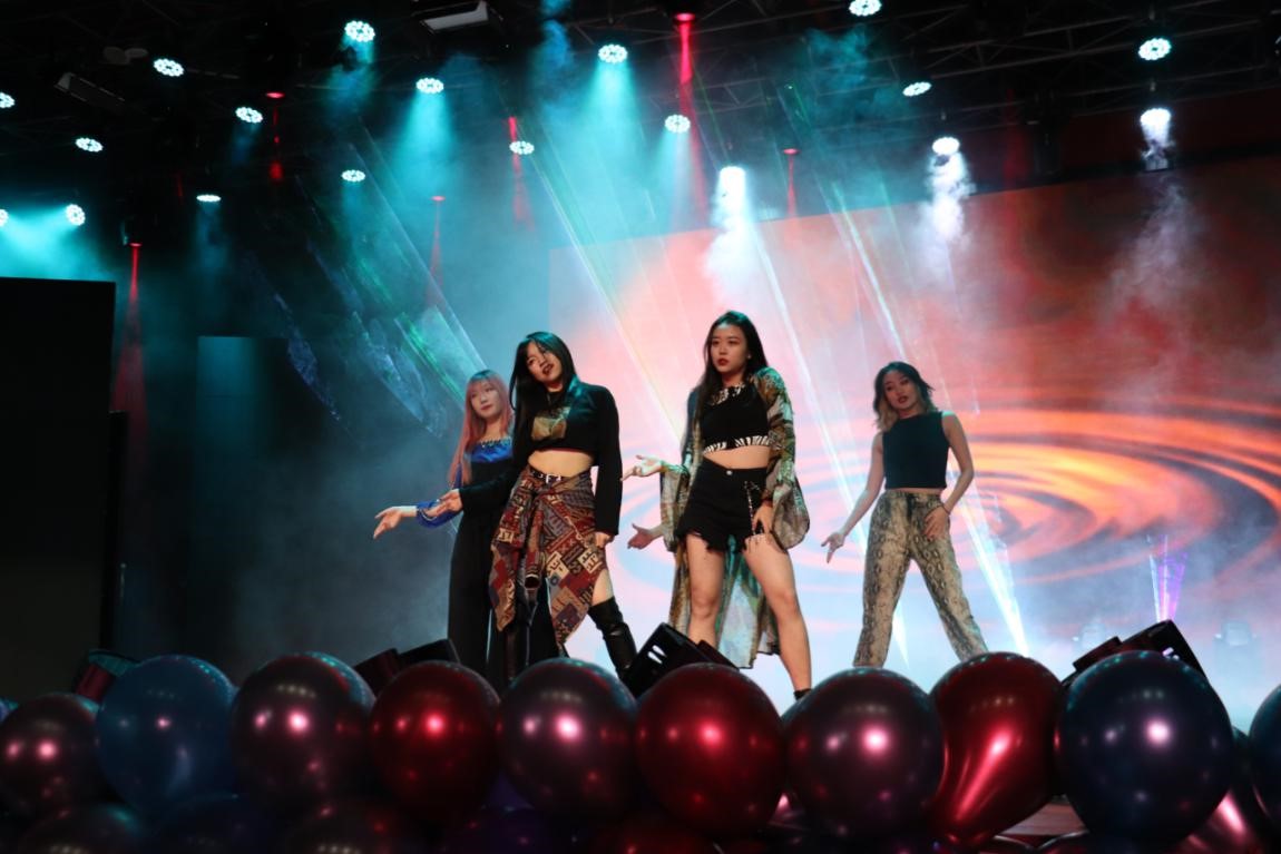 女团共同带来的女团舞串烧《AYA,The Baddest》,他们曼妙的舞姿和独特的风情燃起了青春之火,引起场下同学们的阵阵欢呼。