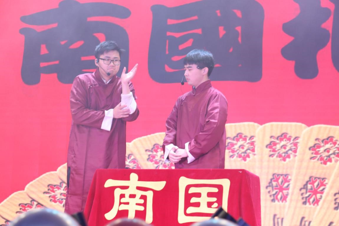 第七个节目是南国相声社带来的相声《侠客行不行》。两位相声演员用生动的语言和丰富的肢体动作诠释了每个热血男儿心中的武侠梦,并展现了追梦过程中那些荒诞的经历。他们幽默风趣的语言风格引得场下阵阵欢笑。