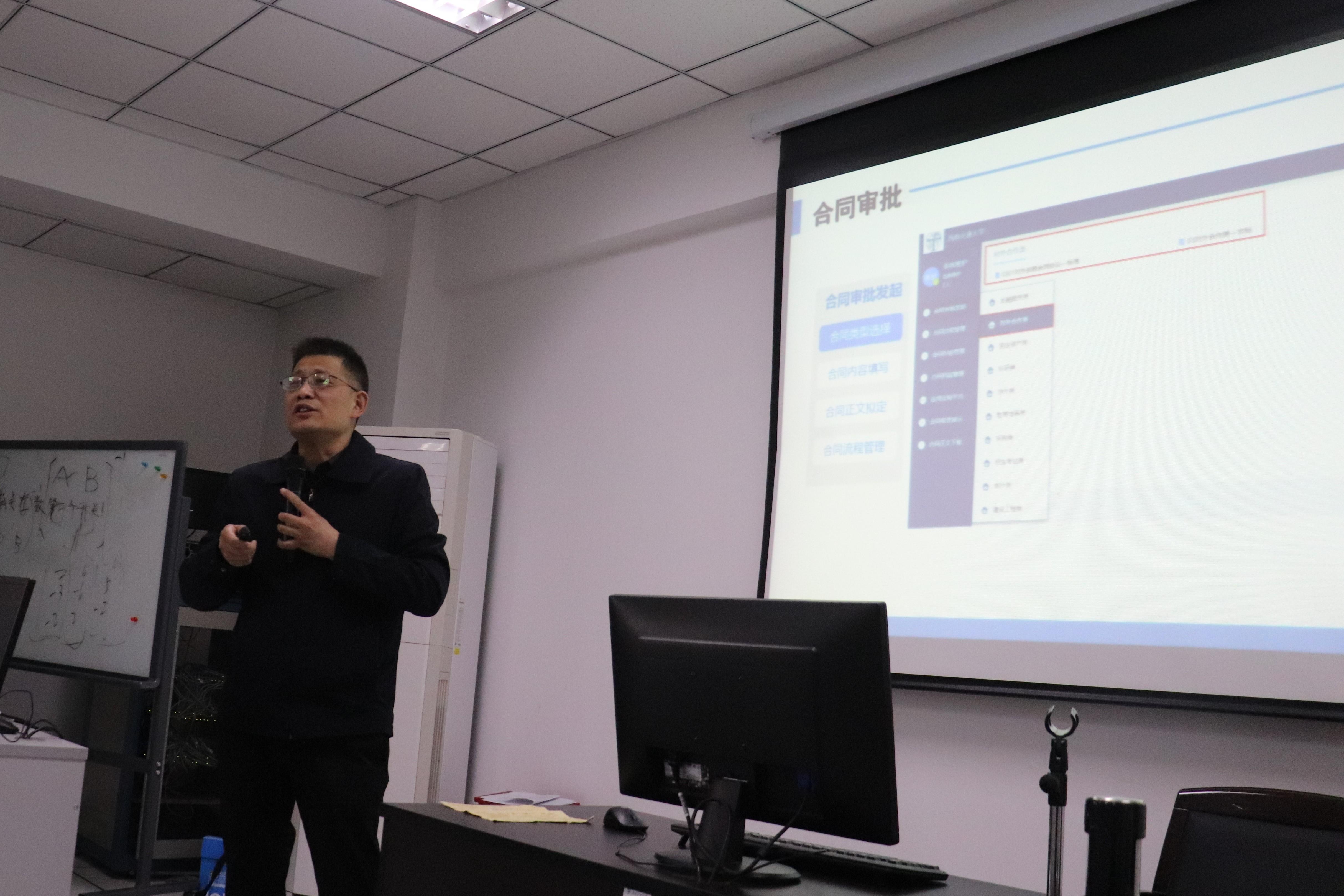 会议第四项,李志辉副院长对学校合同管理系统的使用进行了介绍,他提到,学校合同管理线上模式已经全面取代了线下模式,实现了智能化,希望学院老师可以尽快熟悉操作系统。