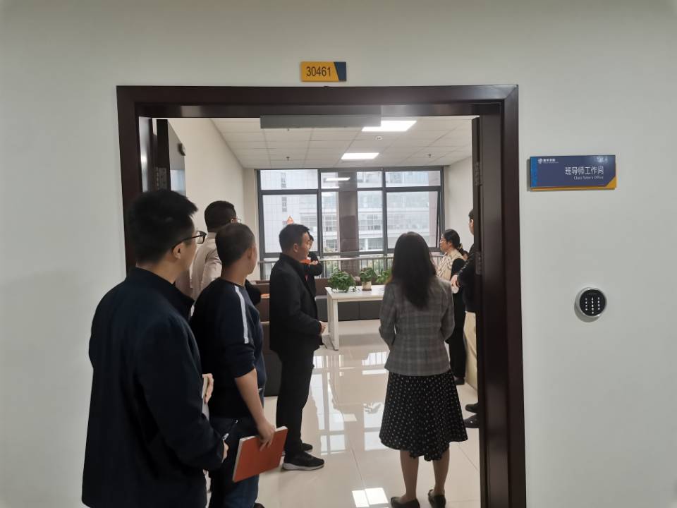 会后,各位老师与辅导员移步至X30461参观班导师工作间,并就如何布置场所和开展线下教研活动交换意见。