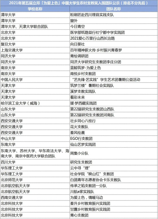 “阳光彩虹小分队”实践团队在200余所高校388支大学生团队中脱颖而出,成功成为“立邦 为爱上色”项目——为爱上色中国农村支教奖100支入围团队之一。团队也获得茄子视频