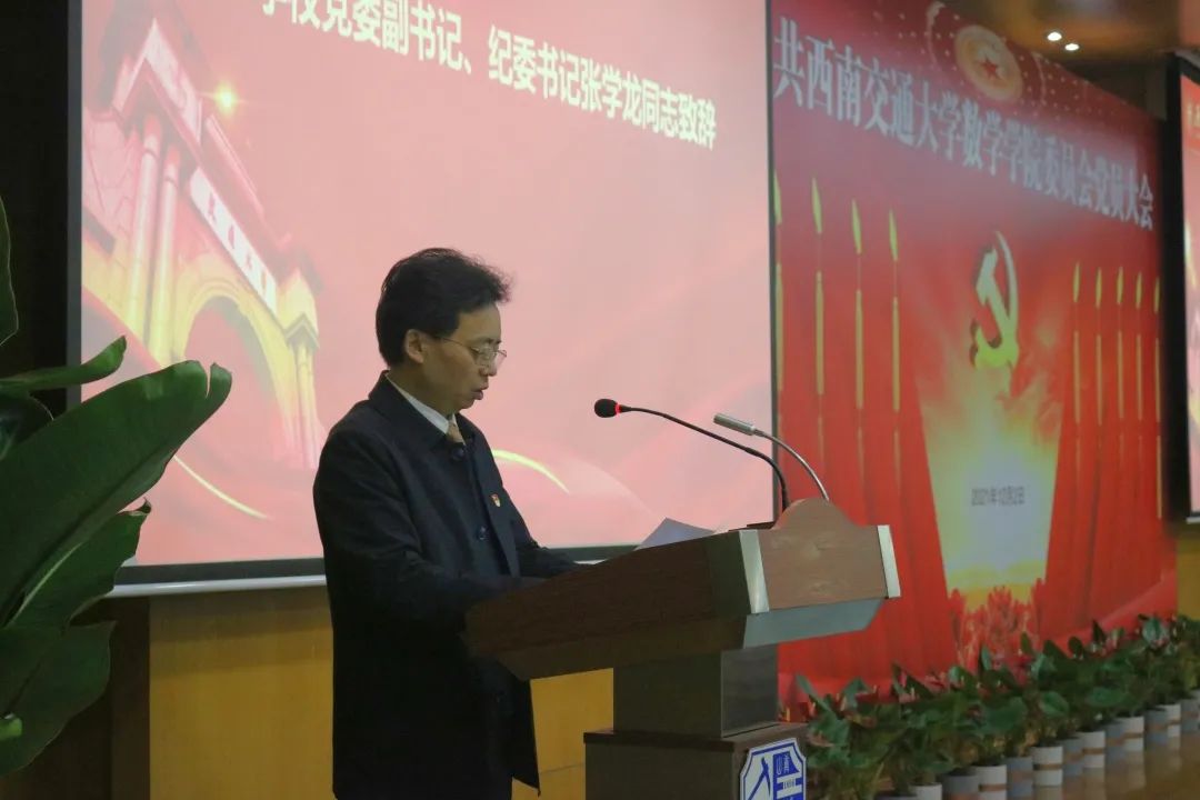 会议伊始,校党委副书记、纪委书记张学龙同志代表学校党委致辞。张学龙书记代表学校党委对本次会议的召开表示热烈的祝贺,并宣布学校关于杨晗同志职务变动的通知:免去杨晗同志茄子视频