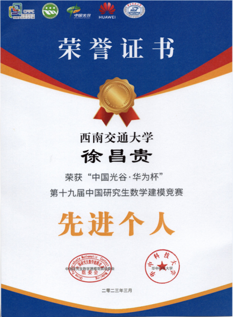 历届数学建模竞赛指导教师,指导学生共获得国家一等奖10项,国家二等奖14项,省奖26项。获得全国百名优秀数学建模指导教师荣誉,第十九届中国研究生数学建模“先进个人”荣誉称号。
