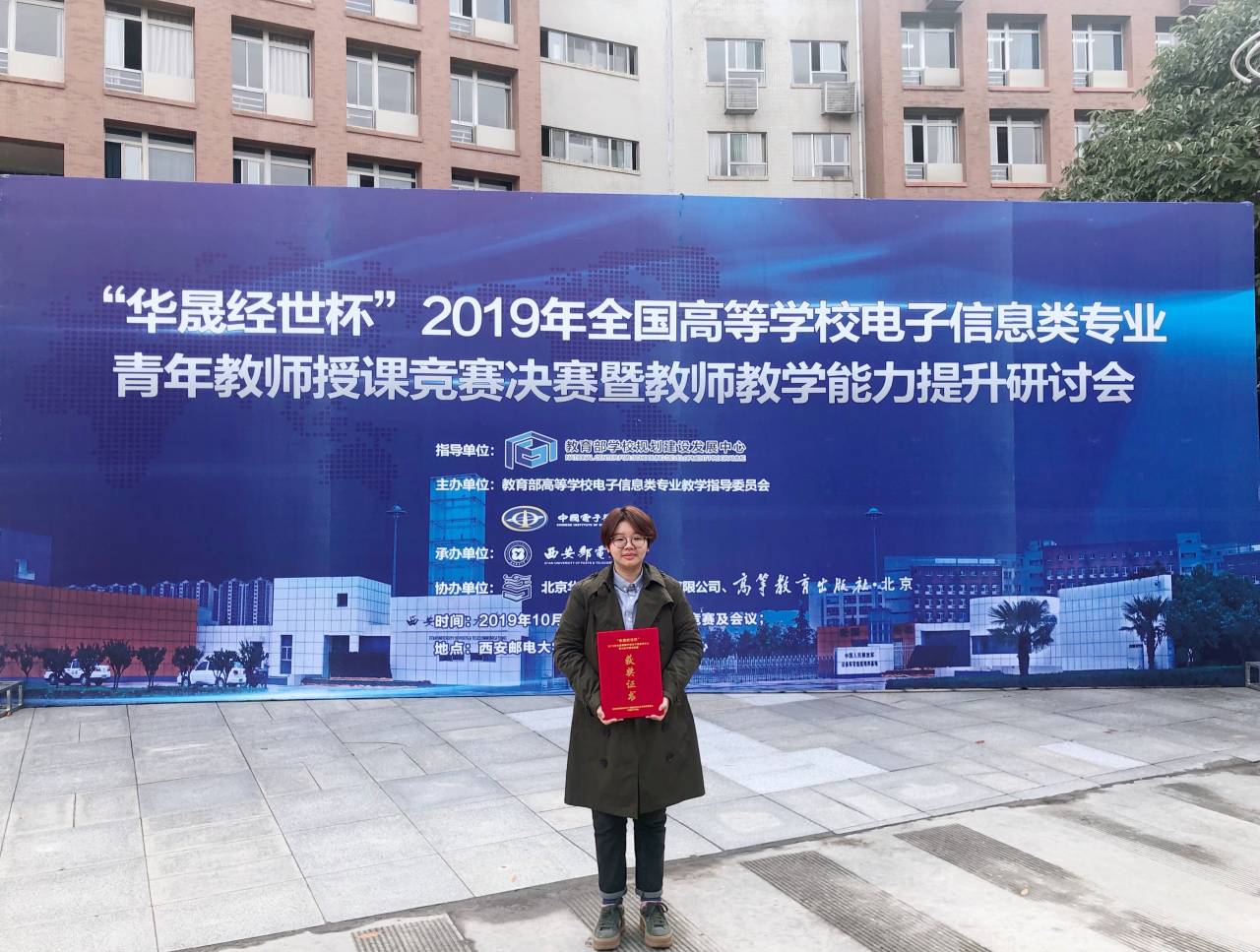 10月19至20日,2019年全国高等学校电子信息类专业青年教师授课竞赛决赛在西安邮电大学举行。电子信息与通信学院教师高雅玙继在预赛阶段获得华南赛区一等奖后,代表学校参加此次决赛,斩获全国一等奖的佳绩。