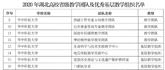 根据《省教育厅办公厅关于申报2020年湖北省高等学校优秀基层教学组织的通知》(鄂教高办函[2020]5号),经高校申报、专家评审,湖北省教育厅审核确定154个基层教学组织为2020年湖北省高校优秀基层教学组织,电信学院教学实验中心获批2020年省级优秀基层教学组织。