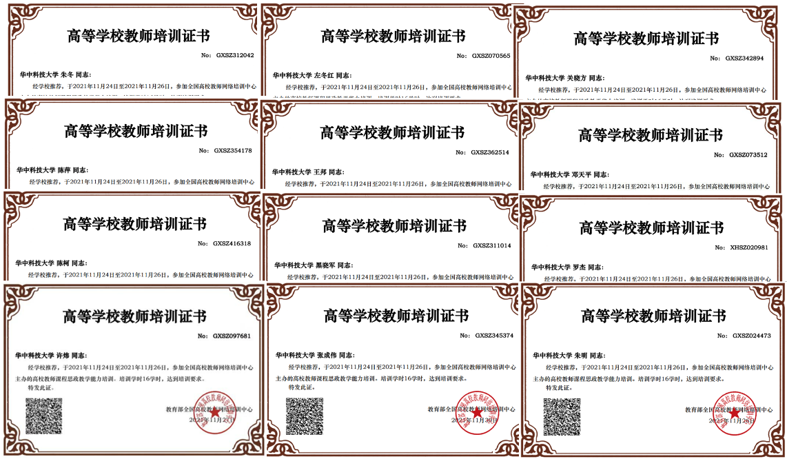 学院注册参会的12位教师在培训中认真学习,按时完成本次培训所有内容,如期取得培训结业证书。通过这次培训,参训教师们的课程思政建设意识和能力得到很大提升,均表示会努力成为课程思政理念的倡导者、课程思政建设的践行者、课程思政教学的研究者,共同推动课程思政落地落实、见功见效。