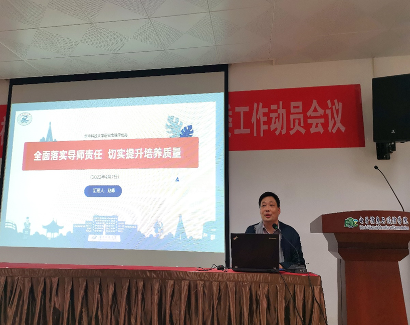 (通讯员 傅熙熙) 为深入学习贯彻习近平总书记关于研究生教育的重要指示批示精神,落实立德树人职责使命,提升研究生培养质量, 4月7日下午,电信学院在南一楼西203会议室召开研究生导师工作培训会议。校研究生院副院长赵峰、电信学院院长邱才明参加会议。