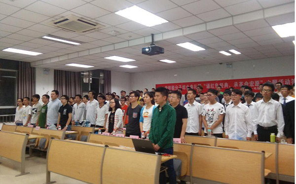 5月19日晚7:30,电子信息与通信学院第32期入党积极分子培训班暨“诵红色经典,承革命宏愿”主题答辩展示活动在东九B203隆重召开。出席本次活动的嘉宾有:电信学院党委副书记周群伟同志,电信学院辅导员梅健同志、潘欣同志、项威同志、司玮辰同志、张浩同志和张焕宸同志。