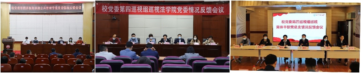 图为校党委第四巡视组巡视公共管理学院党委、法学院党委、离休干部党总支情况反馈会。