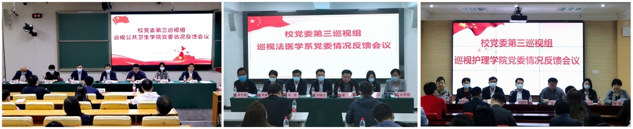 图为校党委第三巡视组巡视公共卫生学院党委、法医学系党委、护理学院党委情况反馈会。