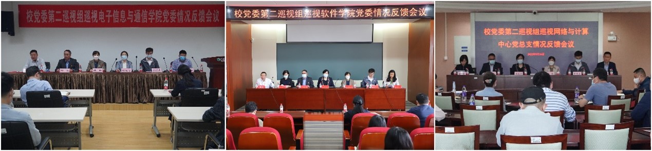 图为校党委第二巡视组巡视电子信息与通信学院党委、软件学院党委、网络与计算中心党总支情况反馈会。