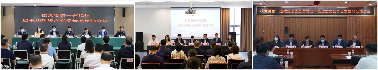 图为校党委第一巡视组巡视武汉华中科大资产管理有限公司党委、华中科技大学出版社党委、经营性资产管理委员会办公室情况反馈会。