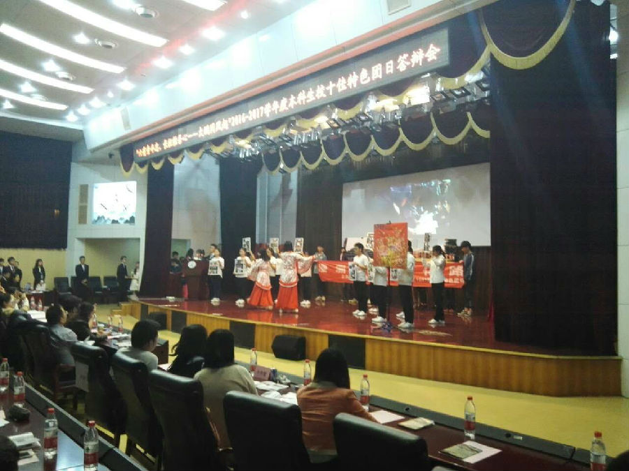在短短两个半小时的时间里,校二十佳支部接连登场,联手为评委和观众送上这场年度大戏。舞台上人来人往,人声鼎沸,台下惊叹连连,喝彩叫好。二十个支部答辩形式风格迥异,百花齐放,将大会气氛一次又一次推上高潮。值得一提的是,晚会开场的民族舞蹈、晚会中穿插的古筝四重奏和对口相声表演,在极具观赏性的同时也向观众们展示出中国传统文化的巨大魅力。
